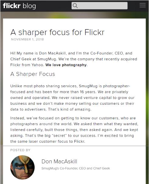 去年 Verizon 完成了對雅虎的收購,然后 SmugMug 在今年 4 月,從 Verizon 旗下數字媒體子公司 Oath 手中接管了 Flickr。