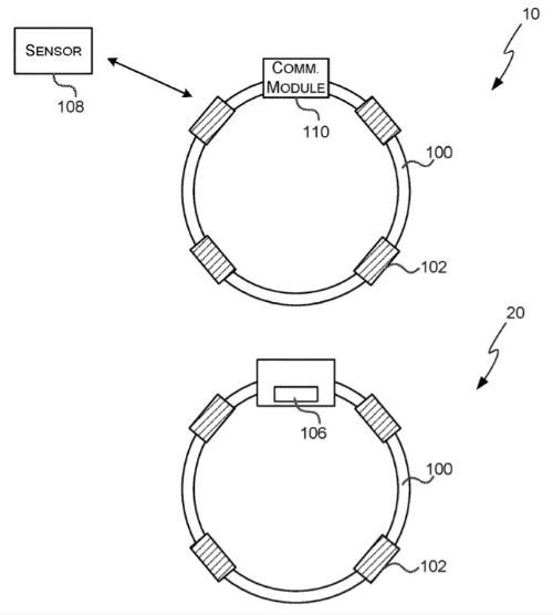 該專(zhuān)利詳細描述了擁有多個(gè)可調節執行器(Actuators)的可穿戴設備。這些執行器可以基于傳感器數據來(lái)調整其他執行器的工作循環(huán)周期、功率或者位置等等。例如使用觸覺(jué)致動(dòng)來(lái)進(jìn)行醫療性刺激,并且在各種示例中,可穿戴設備可以靠近關(guān)節佩戴并且用于影響(例如,減少或穩定)關(guān)節或肢體的不自主運動(dòng)。