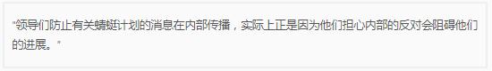 有消息人士稱(chēng),Google 的高層認為“蜻蜓計劃”過(guò)于敏感,以至于只會(huì )口頭溝通,不會(huì )在高層會(huì )議上留下任何紙質(zhì)文件記錄。一些了解計劃的人曾被告知,如果與不知情的同事談?wù)摯耸?,有可能丟掉工作。