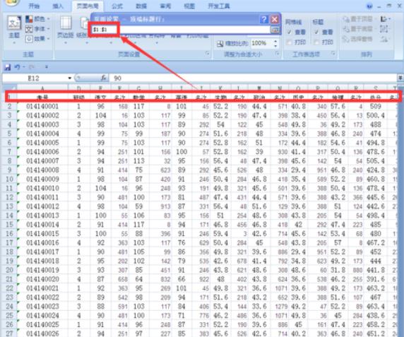 在原來(lái)工作表中選中第一行,也就是光標選中你需要每頁(yè)都打印的表頭部分。