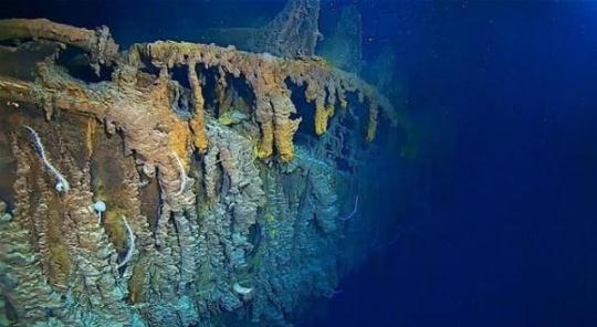 探險隊在八天的時(shí)間里對泰坦尼克號進(jìn)行了五次潛水探查。探險隊發(fā)現,船體浸沒(méi)在冰冷刺骨的海水里,并受到洋流變化的影響,船身情況正在惡化。船身覆蓋著(zhù)厚厚的一層藻類(lèi)植物,一些薄弱部位已經(jīng)開(kāi)始塌陷和脫落,此外,船長(cháng)房間里的浴缸也不見(jiàn)了蹤影。