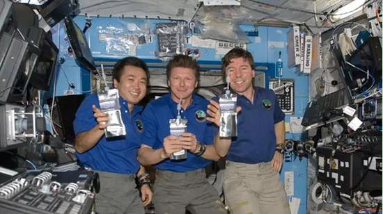 2008年,在航天飛機還未退役的年代,奮進(jìn)號航天飛機將一套價(jià)值2.5億美元的水循環(huán)系統運抵國際空間站。這套系統的功能是收集宇航員們的排出的尿液、蒸發(fā)到空氣中的汗液和呼出到空氣中的水蒸氣,經(jīng)過(guò)凈化處理后生成可飲用的水。在測試了一段時(shí)間后,系統產(chǎn)生的飲用水樣本被發(fā)現號航天飛機運回地面。經(jīng)過(guò)檢測,NASA認為系統的工作狀況是令人滿(mǎn)意的,產(chǎn)生的飲用水可以安全使用。自那之后,宇航員們就開(kāi)始將自己排出體外的水又喝回來(lái),真真是肥水不流外人田。
