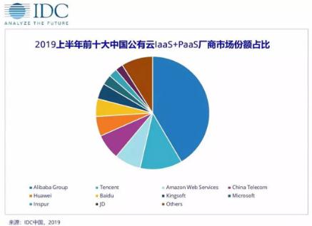 根據國際數據公司(IDC)11 月發(fā)布的《中國公有云服務(wù)市場(chǎng)(2019 上半年)跟蹤》報告,2019 上半年中國公有云服務(wù)整體市場(chǎng)規模(IaaS/PaaS/SaaS)達 54.2 億美元,綜合 IaaS+PaaS 的市場(chǎng)占有率位居行業(yè)第二梯隊,而阿里云的市占率接近 50%。