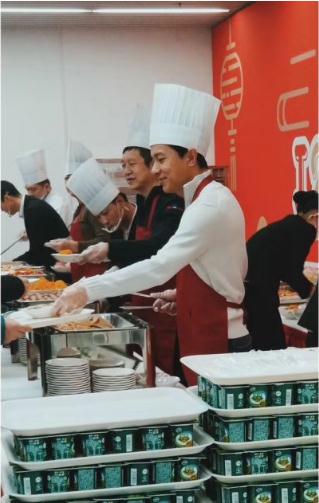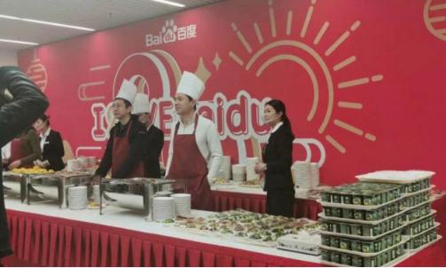 百度創(chuàng )始人李彥宏 Robin 和 CTO 王海峰化身百度員工食堂大廚,負責給大家分發(fā)肉餅。