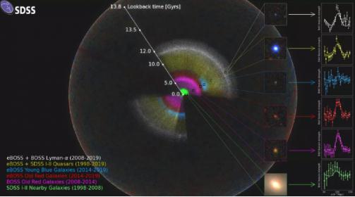 在 20 年的時(shí)間里,來(lái)自世界各地的科學(xué)家在分析了 400 多萬(wàn)個(gè)星系和類(lèi)星體后,編制了這張地圖,創(chuàng )造了一個(gè)代表,加拿大滑鐵盧大學(xué)的撰稿人 Will Percival 將其視為 "宇宙膨脹的完整故事"??茖W(xué)家們說(shuō),這個(gè)故事的一部分是,大約在 60 億年前,宇宙的膨脹開(kāi)始加速,并且從那時(shí)起,它繼續變得更快。