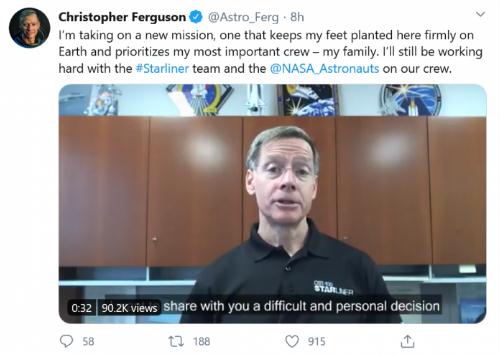 Ferguson 在 Twitter 上發(fā)布的一段視頻中表示,此次離開(kāi)是他必須做出的一個(gè)“艱難的個(gè)人決定”,“明年對我的家庭來(lái)說(shuō)非常重要。我已經(jīng)做出了一些承諾,但我不能冒險錯過(guò)。我哪兒也不去。我明年不會(huì )去太空。”