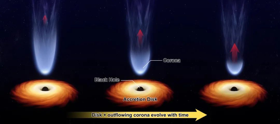 該研究表明,冕趨向黑洞收縮的同時(shí),也以相對論速度向外運動(dòng),而且冕的尺度越小,速度越大。同時(shí),這項成果也為研究冕在黑洞吸積過(guò)程中的運動(dòng)提供了重要依據。