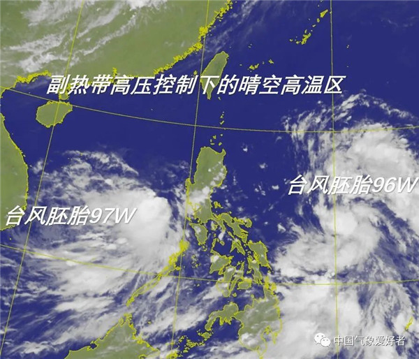 因此,在強有力的副高引導下,這兩個(gè)臺風(fēng)胚胎的大致方向是明確的:都對準我國。其中,東邊的96W對準臺灣、粵東閩南沿海;而西邊的97W對準粵西、海南沿海。