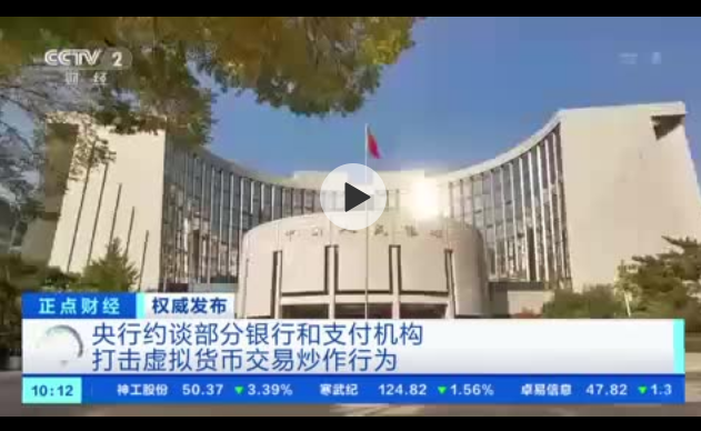 央行約談部分銀行和支付機構 打擊虛擬貨幣交易炒作行為