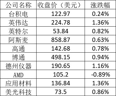 美股中的主要芯片股表現如下:
