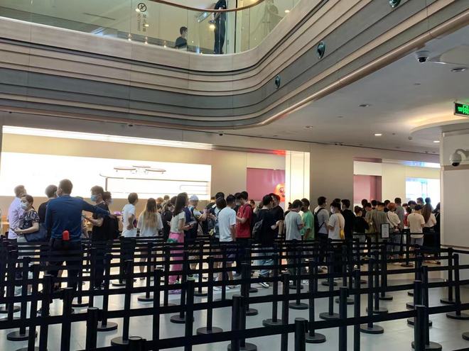 9 月 24 日早上 8 時(shí),蘋(píng)果上海南京東路直營(yíng)店迎來(lái)了第一批取 iPhone 13 系列新機的客戶(hù)。由于今年采用了線(xiàn)上下單線(xiàn)下取貨的模式,來(lái)店取貨的用戶(hù)在蘋(píng)果店門(mén)口排起了長(cháng)隊。