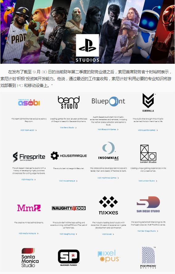 十時(shí)裕樹(shù)說(shuō):“展望未來(lái),我們計劃利用這些工作室來(lái)提高 PlayStation Studios 的開(kāi)發(fā)能力,并利用必要的專(zhuān)業(yè)知識將游戲部署到 PC 和移動(dòng)設備。由于本財年年初以來(lái)宣布的收購,PlayStation 工作室的數量將增加 4 個(gè),達到 16 個(gè),開(kāi)發(fā)者的數量將增加近 20%。我們計劃在未來(lái)繼續積極投資于我們的開(kāi)發(fā)能力。”