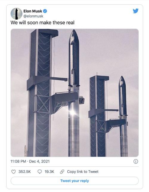 12 月 6 日消息,當地時(shí)間周六太空探索技術(shù)公司 SpaceX 創(chuàng )始人埃隆·馬斯克(Elon Musk)在個(gè)人社交媒體 Twitter 上發(fā)布了有關(guān)星際飛船的圖片,并稱(chēng):“我們很快就能實(shí)現這些目標。”