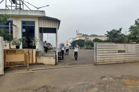 圖2:富士康印度分公司工廠(chǎng)正被關(guān)閉,入口處可以看到私人保安