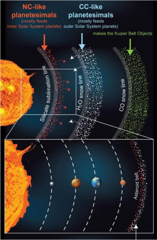 伊齊多羅在聲明中表示,壓力凸點(diǎn)調節了太陽(yáng)系內層可用于形成行星的物質(zhì)的數量。根據模擬,距離太陽(yáng)最近的環(huán)形成了內太陽(yáng)系行星,即水星、金星、地球和火星。中間的環(huán)最終成為外太陽(yáng)系行星,而最外層的環(huán)形成了柯伊伯帶(海王星軌道以外的區域)中的彗星、小行星和其他天體。