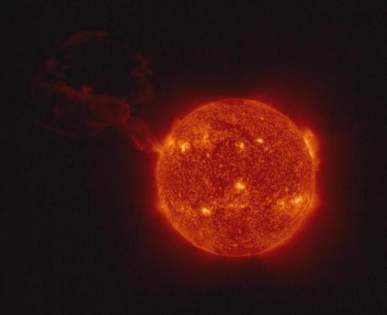 據 New Atlas 報道,太陽(yáng)軌道飛行器(Solar Orbiter)捕捉到了太陽(yáng)巨大噴發(fā)的戲劇性圖像。據歐空局(ESA)稱(chēng),這是有史以來(lái)在單張圖像中觀(guān)察到的最大的日珥噴發(fā),整個(gè)太陽(yáng)盤(pán)都在一張圖片中,幸運的是,它并沒(méi)有指向地球。