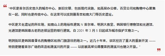 中區以其歷史建筑、傳統市場(chǎng)和高檔零售店的混合而聞名。它也是標志性的東大門(mén)德興廣場(chǎng)墻的所在地。