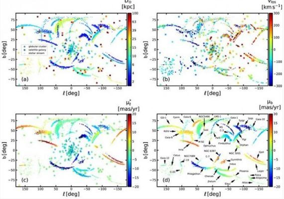 關(guān)于這個(gè)問(wèn)題的最新工作來(lái)自于德國海德堡馬克斯-普朗克天文研究所的洪堡研究員 Khyati Malhan 及其同事。他們一起分析了基于蓋亞探測器早期第三次數據發(fā)布(EDR3)的數據,尋找與我們的星系合并的小型星系的遺跡。這些可以在所謂的銀河系光暈中找到,它圍繞著(zhù)由年輕恒星組成的圓盤(pán)和由較年長(cháng)恒星組成的中央隆起,構成了銀河系中更發(fā)光的部分。