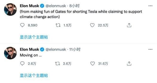 周日,馬斯克先是發(fā)布了一條意思含糊的推文:“離開(kāi)”,這讓一些用戶(hù)詢(xún)問(wèn)他是否打算放棄收購推特,在業(yè)內引起一片嘩然。馬斯克隨即又發(fā)文澄清,自己意思是不再取笑蓋茨。他在推文中稱(chēng),自己說(shuō)的是不再取笑蓋茨在支持解決氣候變化問(wèn)題的同時(shí)做空特斯拉。