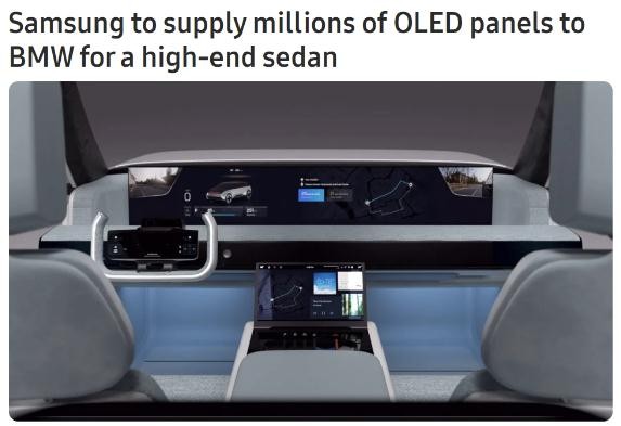 從 2024 年開(kāi)始,寶馬全新高端轎車(chē)將開(kāi)始量產(chǎn),搭載三星顯示 OLED 面板。6-7 年內,三星顯示將為 400 萬(wàn)輛寶馬汽車(chē)提供 OLED 面板。
