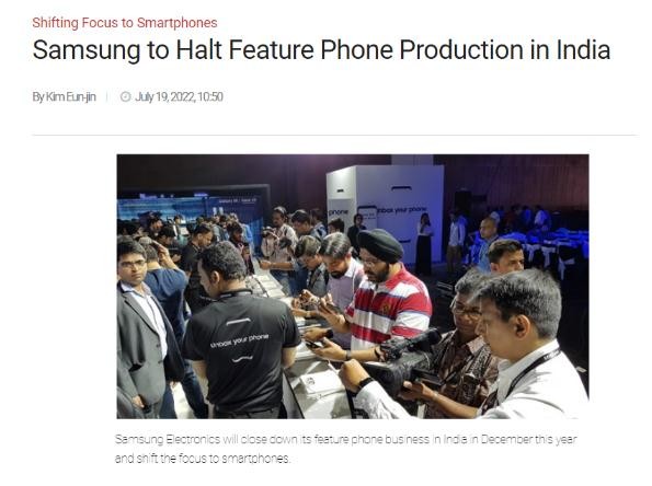 據印度媒體 7 月 18 日報道,三星電子已決定于今年 12 月關(guān)閉其在印度的功能手機業(yè)務(wù),并將重點(diǎn)轉向智能手機。