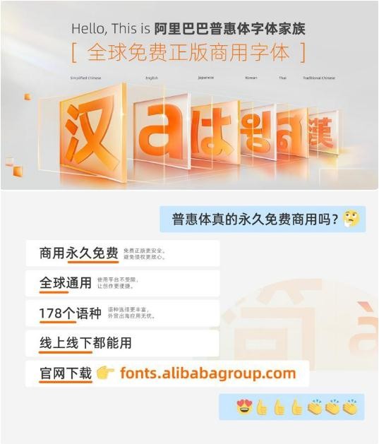 IT之家了解到,阿里巴巴普惠體是阿里巴巴發(fā)布的字體,它將開(kāi)放商業(yè)授權給所有個(gè)人和商家,讓所有用戶(hù)可以免費使用,在 2021 年宣布并承諾阿里巴巴普惠體將永久免費商用。