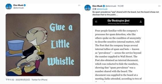 Zatko 的投訴與馬斯克關(guān)于虛假賬戶(hù)數量的質(zhì)疑相呼應,這位社交媒體達人并未放過(guò)如此機會(huì )。報道發(fā)布的當天,他在推特發(fā)布電影《匹諾曹》電影表情包,上面寫(xiě)著(zhù)“吹個(gè)口哨”,暗示自己支持 Zatko 的“吹哨”行為。