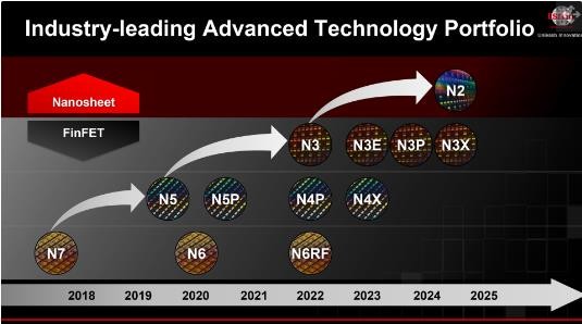 對于 2nm 芯片(N2),臺積電重申其將于 2025 年實(shí)現量產(chǎn)。2nm 芯片是臺積電的一個(gè)重大節點(diǎn),該工藝將會(huì )采用納米片晶體管(Nanosheet),取代鰭式場(chǎng)效應晶體管(FinFET),這意味著(zhù)臺積電工藝正式進(jìn)入 GAA 晶體管時(shí)代。其中,2nm 芯片相較于 3nm 芯片,在相同功耗下,速度快 10~15%。在相同速度下,功耗降低 25~30%。