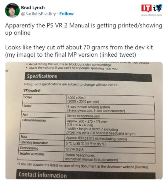 索尼 PlayStation VR2 將于 2023 年初發(fā)售,在推出之前,已經(jīng)有網(wǎng)友曝光了該產(chǎn)品的手冊,其中包括設備的參數信息。