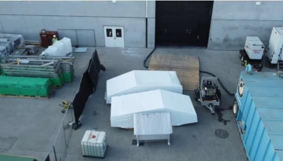 近日,有網(wǎng)友在特斯拉得州超級工廠(chǎng)上方使用無(wú)人機拍到了一些白色設備,看起來(lái)像是用白布蓋住的 Cybertruck 電動(dòng)皮卡車(chē)身。