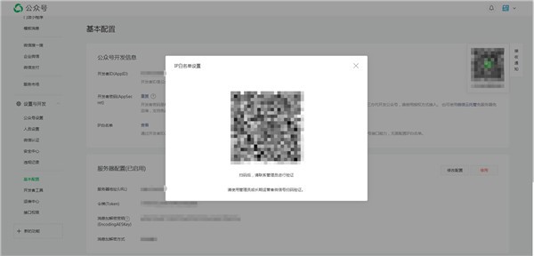 4.點(diǎn)擊確認修改之后會(huì )出來(lái)確認二維碼,需要公眾號管理員或長(cháng)期運營(yíng)者掃碼確認,確認后即設置成功。