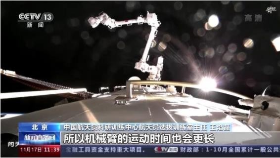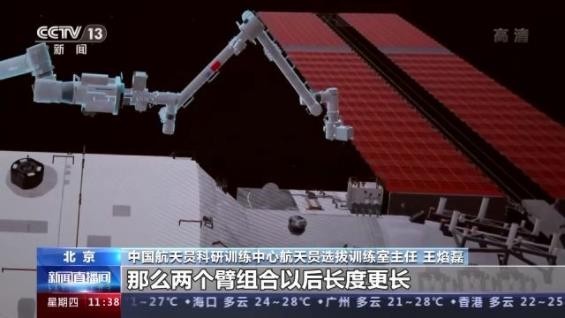 中國航天員科研訓練中心航天員選拔訓練室主任王焰磊:我們首次使用兩個(gè)機械臂,就是大臂小臂形成組合臂的狀態(tài)下支持出艙活動(dòng)任務(wù)。因為大家可以想象一下,單臂的長(cháng)度已經(jīng)很長(cháng)了,那么兩個(gè)臂組合以后長(cháng)度更長(cháng),它的柔性、剛性等和我們單臂狀態(tài)下是有一些區別的。在這種情況下載人去支持完成出艙任務(wù),也是我們做首次的一個(gè)驗證。