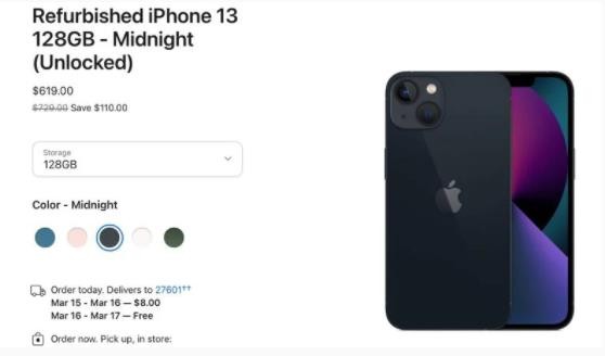 翻新iPhone 13的起售價(jià)為 619 美元,iPhone 13 Pro 的起售價(jià)為 759 美元,iPhone 13 Pro Max 的起售價(jià)為 849 美元。