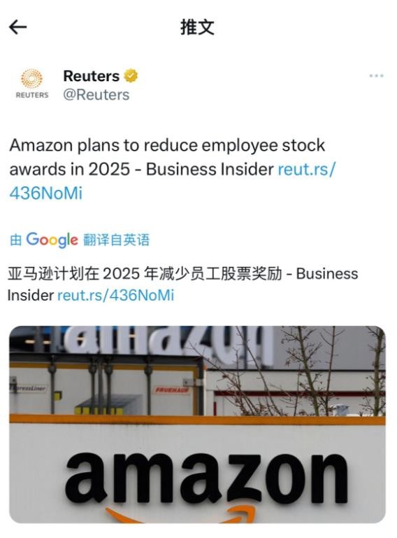 據路透社報道,美國當地時(shí)間 4 月 5 日,亞馬遜發(fā)言人在一份電子郵件聲明中表示,由于不確定的經(jīng)濟環(huán)境,將在 2025 年減少員工股權激勵。