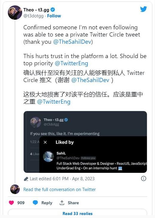 Twitter再次出現爭議問(wèn)題 部分好友可見(jiàn)的推文隨機出現在陌生人的信息流中 14:51:33