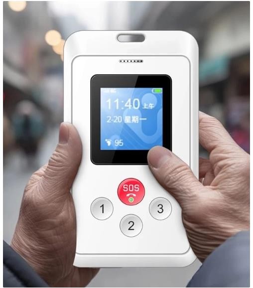 老人如果遇到突發(fā)意外情況,可以長(cháng)按銀齡守護卡上的 SOS 按鍵,一鍵緊急呼救。