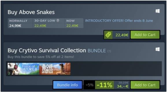 目前已有少部分歐盟地區的 Steam 頁(yè)面顯示 30 天內的游戲最低價(jià),以及當前和折扣價(jià)標簽,方便買(mǎi)家在使用 Steam 購買(mǎi)游戲時(shí)做出更明智的決定。