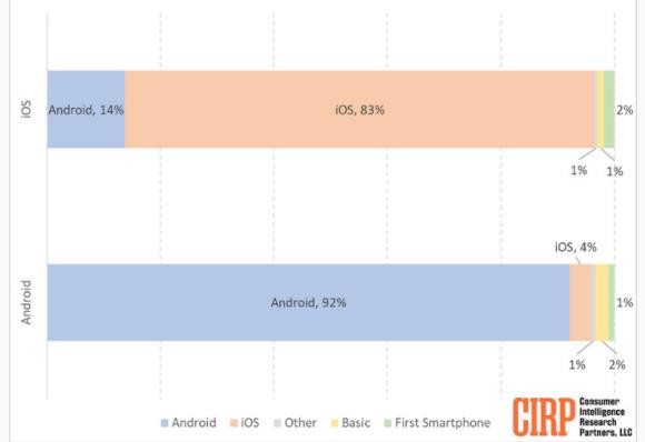 上個(gè)月,CIRP 報告指出,美國 Android 用戶(hù)轉投 iPhone 的比例創(chuàng )下了五年來(lái)新高。