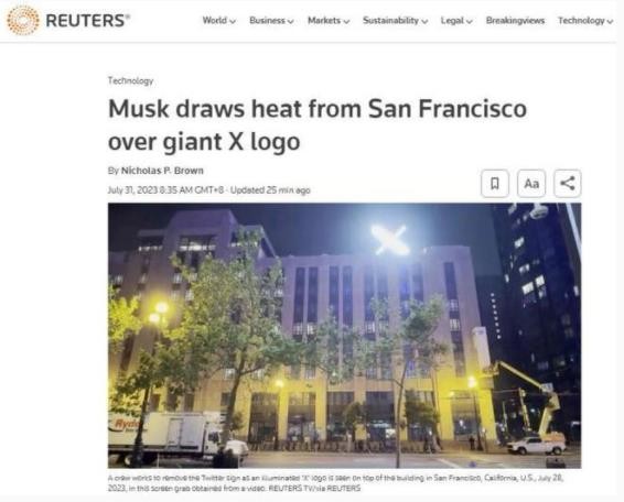 事實(shí)卻是并非所有舊金山人都對馬斯克表示歡迎。在馬斯克宣布將推特公司的名字變更成“X”后,該公司于 28 日在位于舊金山市集街(Market Street)的大樓屋頂上,安裝了一個(gè)會(huì )發(fā)光的“X”標志。這讓一些附近居民感到煩擾,抱怨燈光“刺眼”。