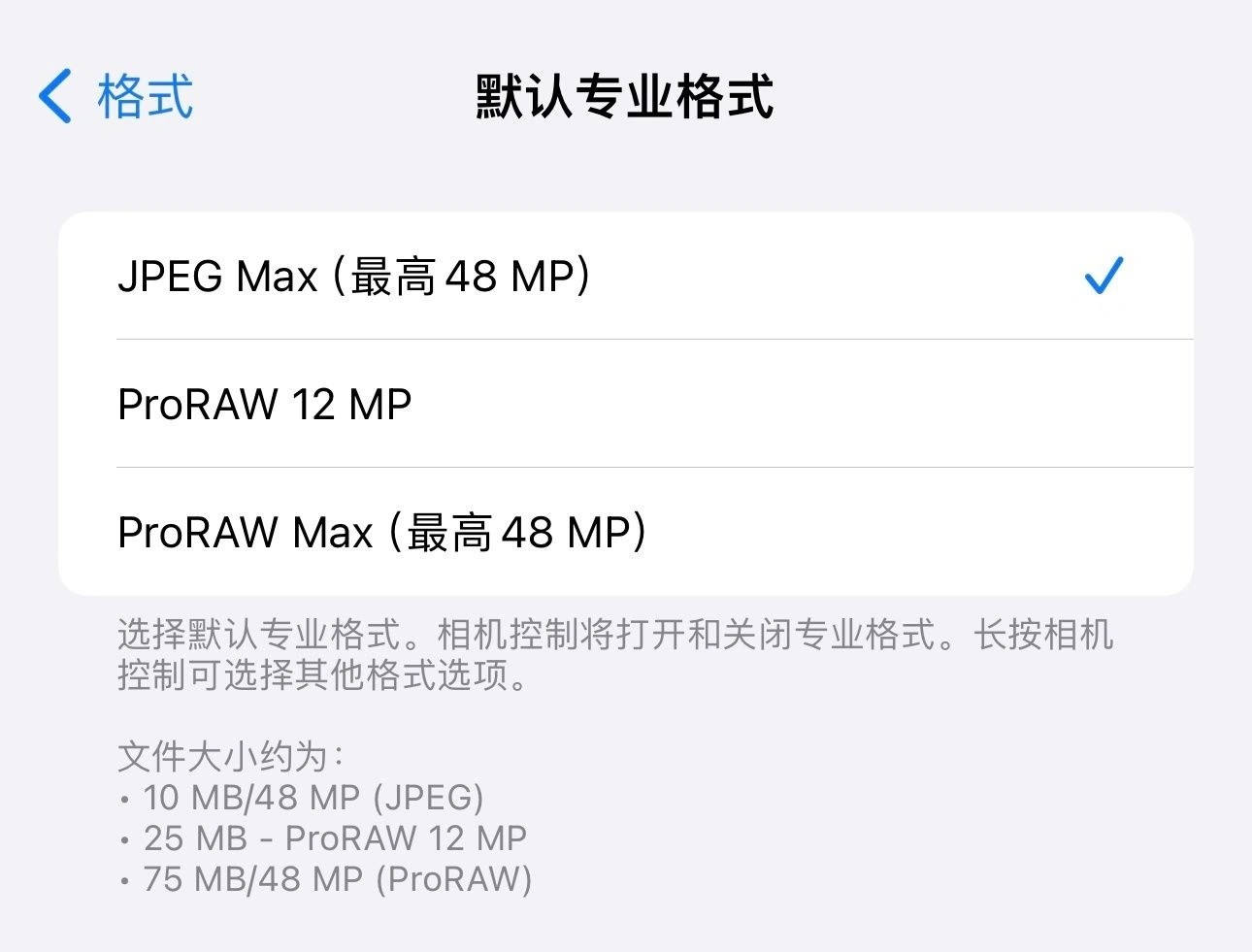 iPhone 15 系列除了“HEIF Max”選項,用于拍攝 4800 萬(wàn)像素 HEIF 格式照片之外,還引入了“JPEG Max”模式,能夠拍攝 4800 萬(wàn)像素 JPEG 圖像,可以進(jìn)一步提高兼容性。此外 4800 萬(wàn)像素的 ProRaw 模式現在叫作“ProRaw Max”。