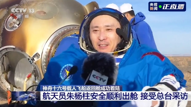 ▲ 朱楊柱安全順利出艙,圖源央視新聞直播/侵刪