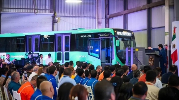 在墨西哥新萊昂州首府蒙特雷,比亞迪墨西哥分公司聯(lián)合國際能源公司 Enel X 向蒙特雷市的公共交通系統 Metrorrey 交付首臺純電高地板大巴底盤(pán)。