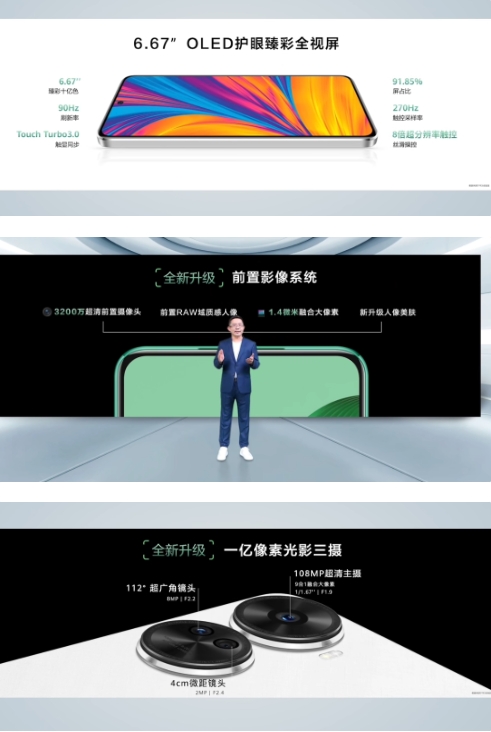 影像方面,這款新機前置 3200 萬(wàn)像素鏡頭,后置 1 億像素光影三攝系統:1.08 億像素主攝(F1.9 光圈、1/1.67 大底)+200 萬(wàn)像素微距鏡頭(4cm)+800 萬(wàn)像素超廣角鏡頭(112°),支持全場(chǎng)景 RAW 域 2.0。