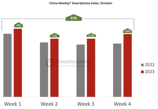 市場(chǎng)調查機構 Counterpoint Research 公布的最新數據顯示,華為和小米引領(lǐng)中國智能手機市場(chǎng)復蘇,10 月份實(shí)現了兩位數增長(cháng)。