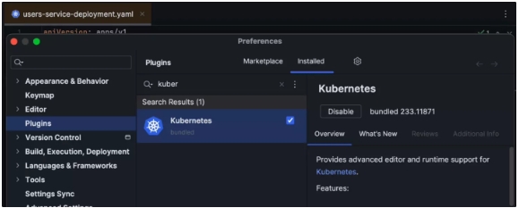 IntelliJ IDEA Ultimate 2023.3 捆綁了 Kubernetes 插件,因此,用于開(kāi)發(fā)基于 Kubernetes 的應用程序的所有插件功能均開(kāi)箱即用。這項集成簡(jiǎn)化了直接從 IDE 部署、調試和管理 Kubernetes 集群的工作流。