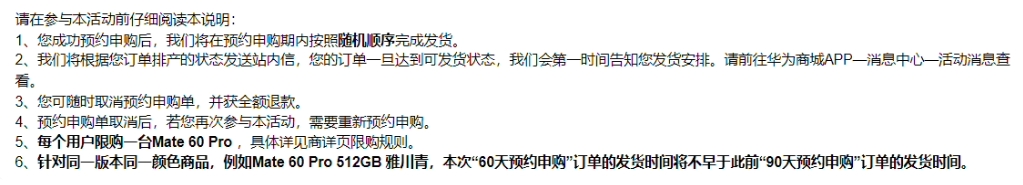 華為 Mate 60 Pro 今日開(kāi)啟“60 天預約申購”:訂單按隨機順序發(fā)貨 10:05:40