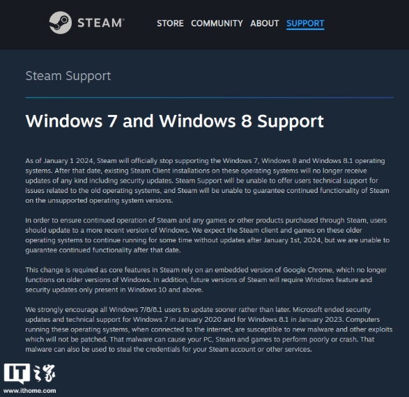 Steam 再次提醒玩家:明年元旦將正式停止支持微軟 Win7/8/8.1 操作系統 10:19:32