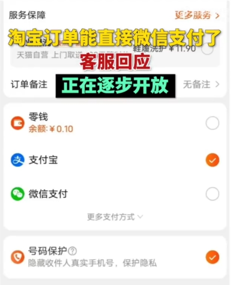 淘寶回應開(kāi)放微信支付:目前僅針對部分用戶(hù)和訂單開(kāi)放,后續將全面覆蓋 09:10:14