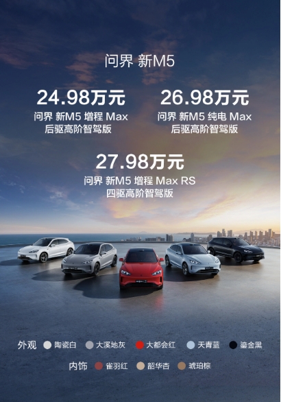 24.98 萬(wàn)元起,AITO 問(wèn)界新 M5 正式發(fā)布:全系標配華為高階智駕 09:00:12