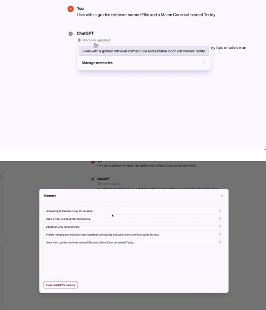 OpenAI 公司今天宣布,面向所有 ChatGPT Plus 用戶(hù)開(kāi)放“記憶”(Memory)功能,可以讓 ChatGPT 記住用戶(hù)在聊天中討論過(guò)的事情,并避免重復信息。
